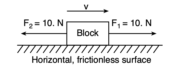 5 The diagram below represents two forces, F1 and F2, acting concurrently on a block sliding on a horizontal, frictionless surface.