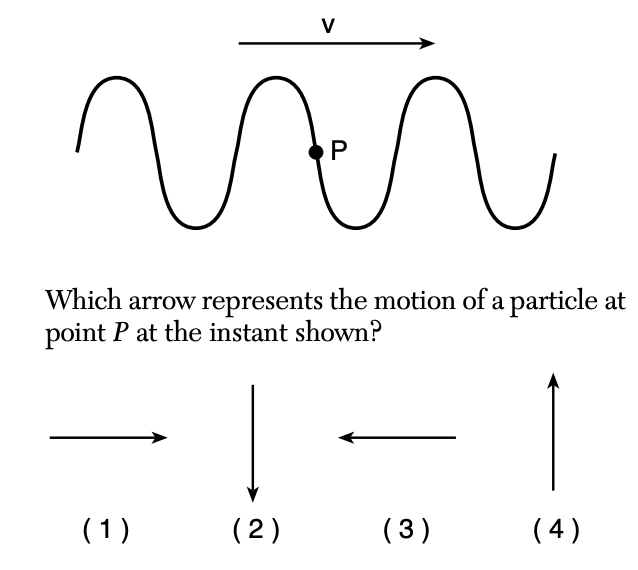 Solution: We can find how the point P moves by back tracing along the wave against the direction of the wave. Choice (4)