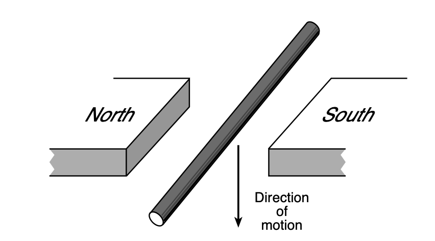 Moving the wire downward between the poles in the direction shown in the diagram will