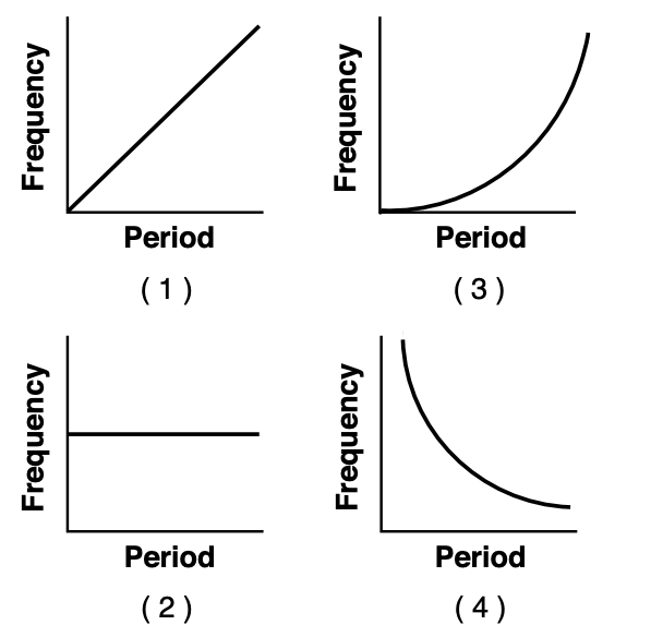 Solution: Frequency and period are inversely proportional to each other so graph 4 is correct. Choice (4)