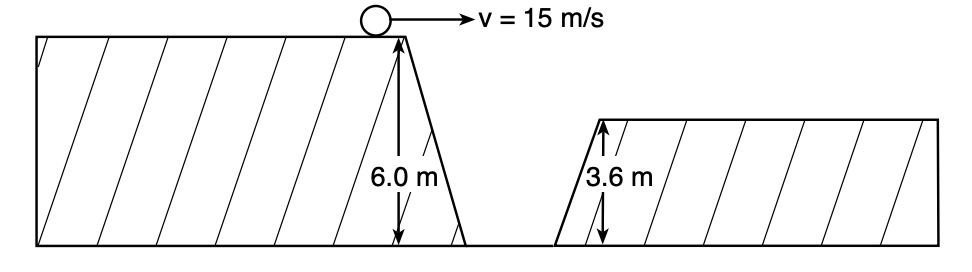 48 The diagram below represents two horizontal platforms that are at different heights above level ground. A ball rolls off the taller platform with a horizontal speed of 15 meters per second and travels through the air, landing on the top of the shorter platform.