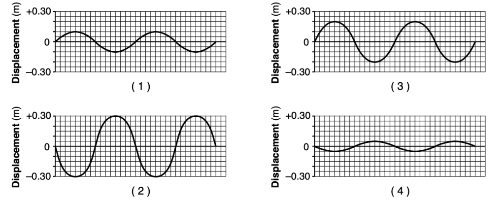 49 Four mechanical waves are created in the same medium over the same time interval. Which diagram represents the wave that transfers the greatest amount of energy?