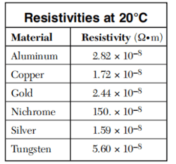 Solution: from the table provided in the reference sheet, the resistance of aluminum should be ½ as great as the resistance of tungsten given that two objects have the same dimension. Choice (3)
